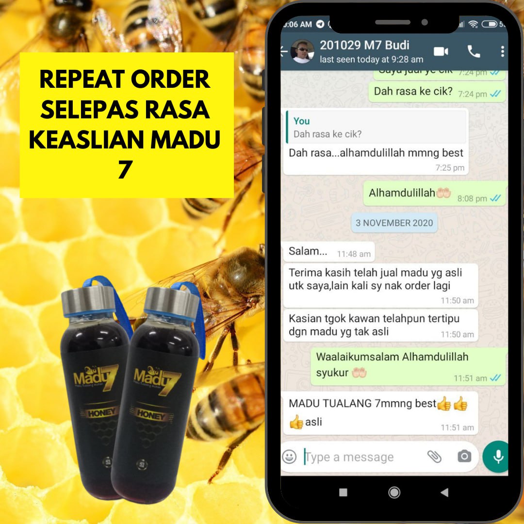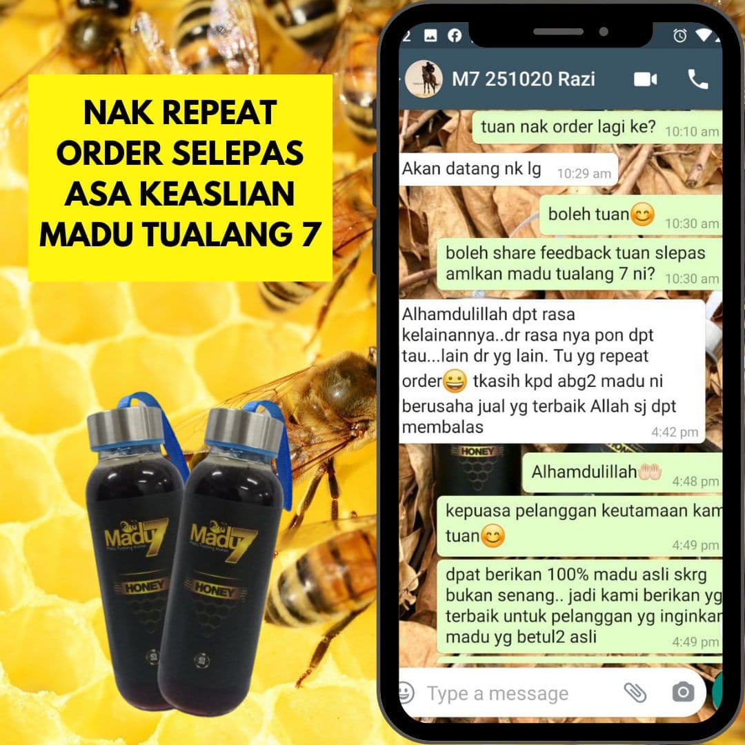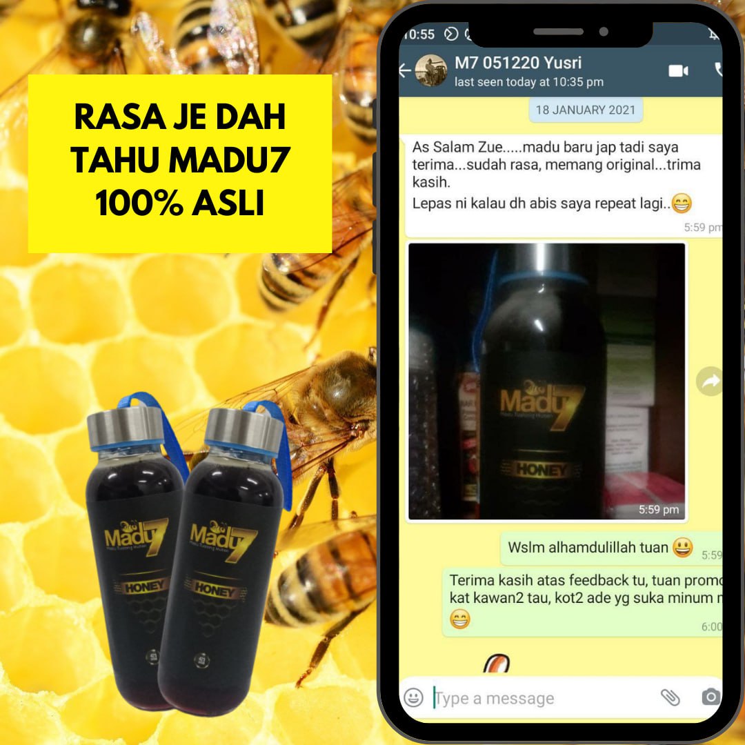 Paling penting kami berikan jaminan WANG DIKEMBALIKAN sebanyak 10 kali ganda jika tuan beli madu kami & dapati madu kami tak asli. (Contoh: Beli harga $100, $1000 kami pulangkan)