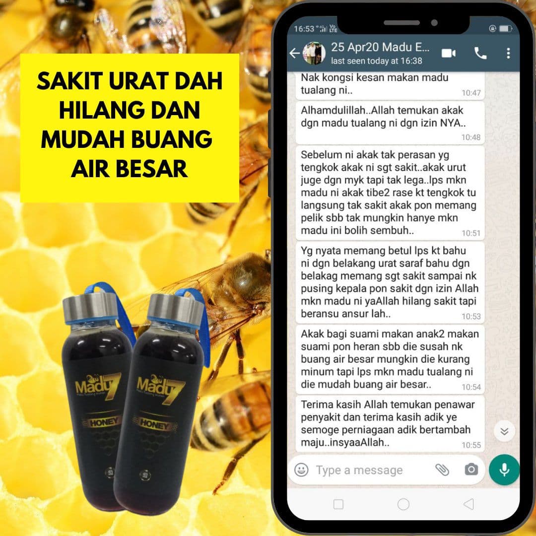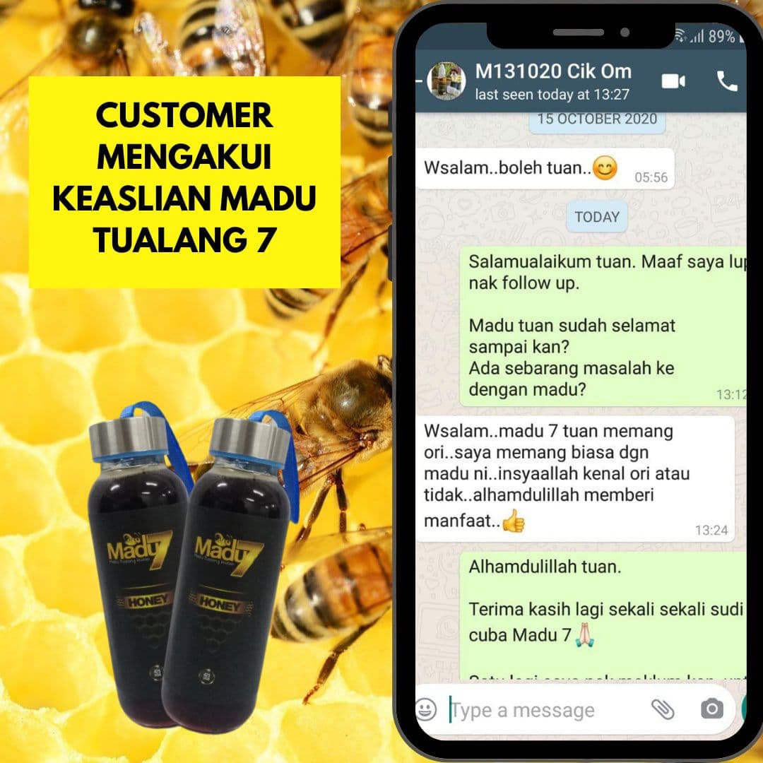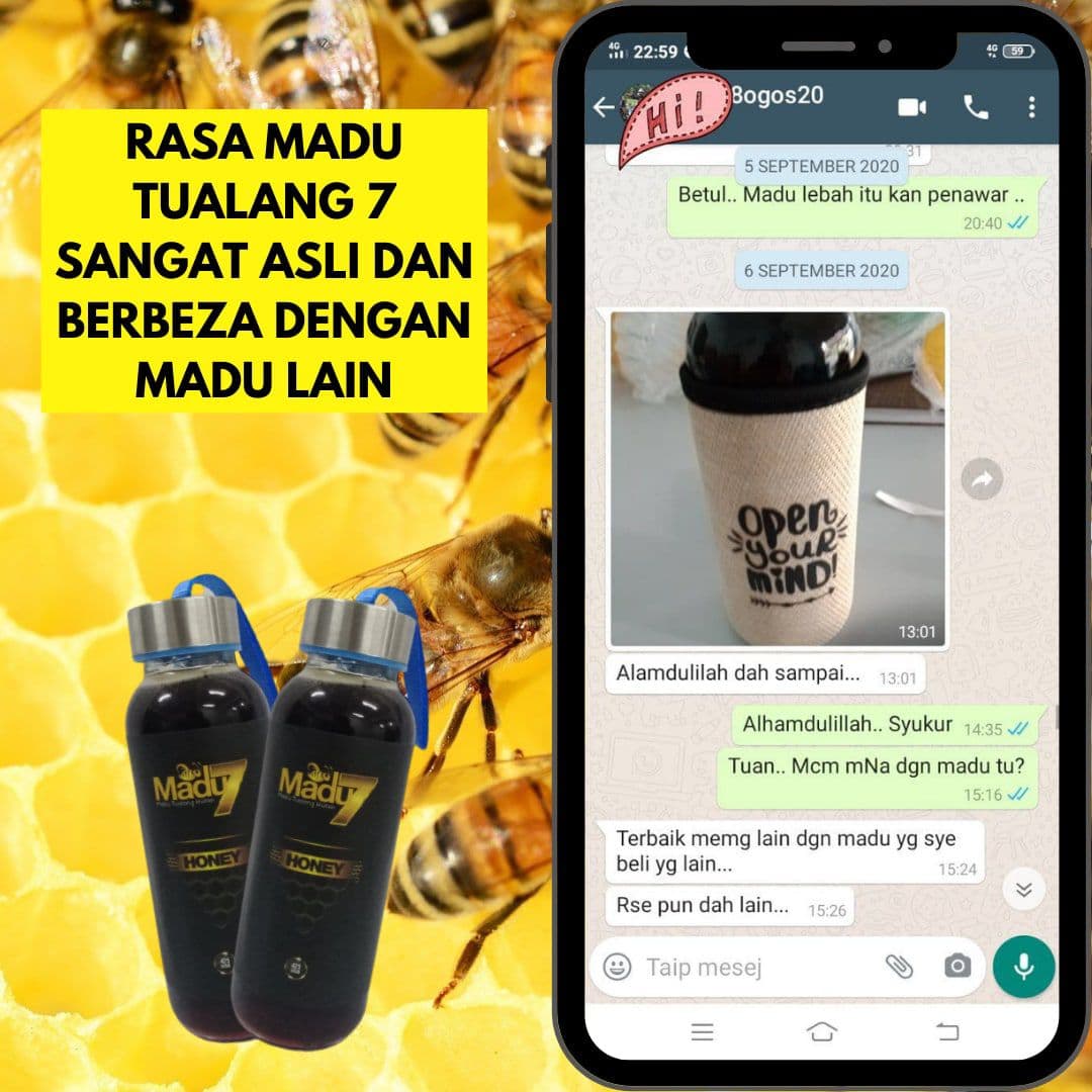 Paling penting kami berikan jaminan WANG DIKEMBALIKAN sebanyak 10 kali ganda jika tuan beli madu kami & dapati madu kami tak asli. (Contoh: Beli harga $100, $1000 kami pulangkan)