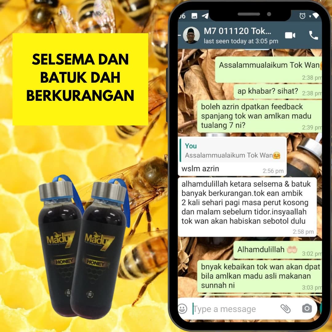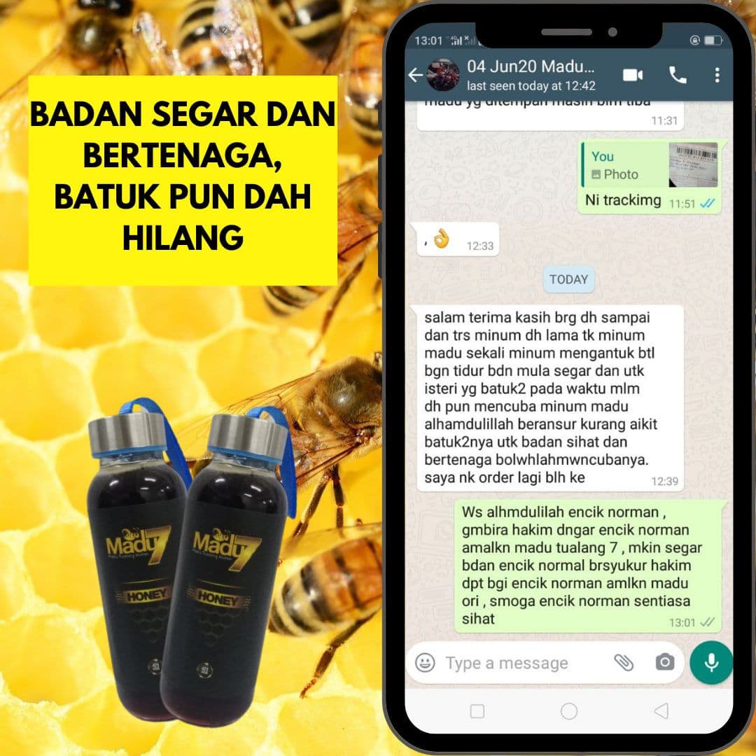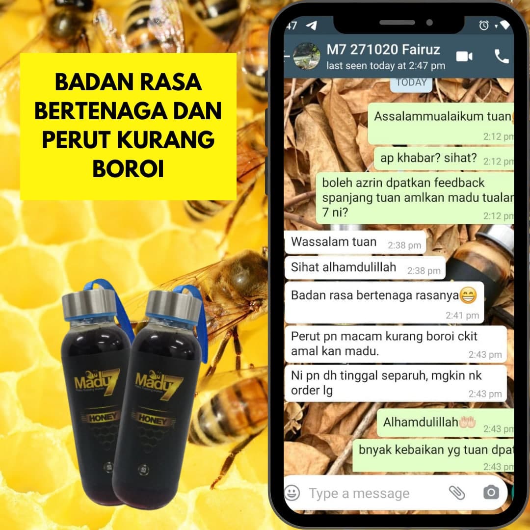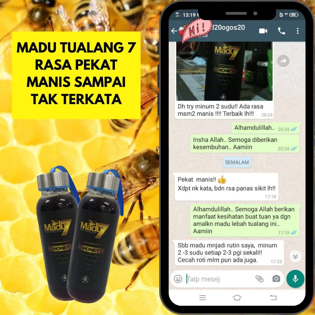 Dengan mengamalkan secara konsisten 2 sudu Madu Tualang 7 setiap malam sebelum tidur dapat menambahkan tenaga dan menyelesaikan masalah lemah tenaga batin ketika bersama dengan pasangan.