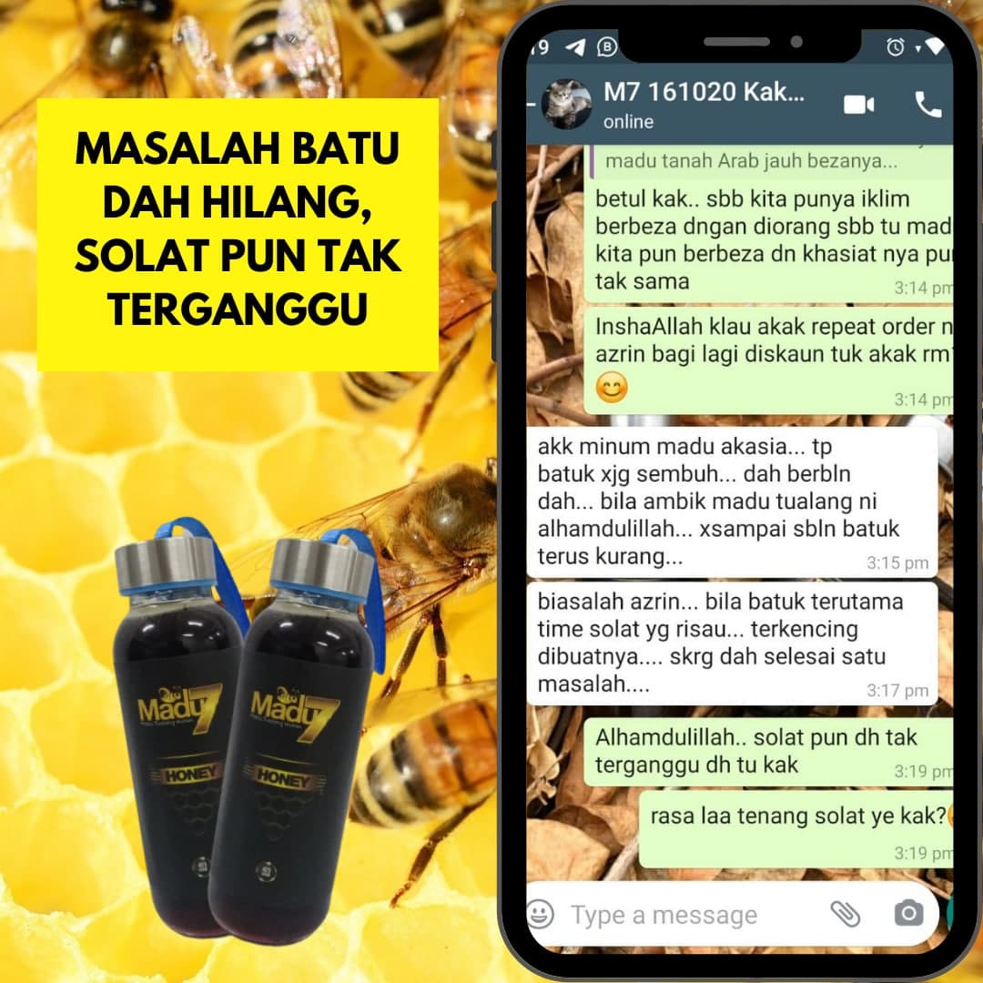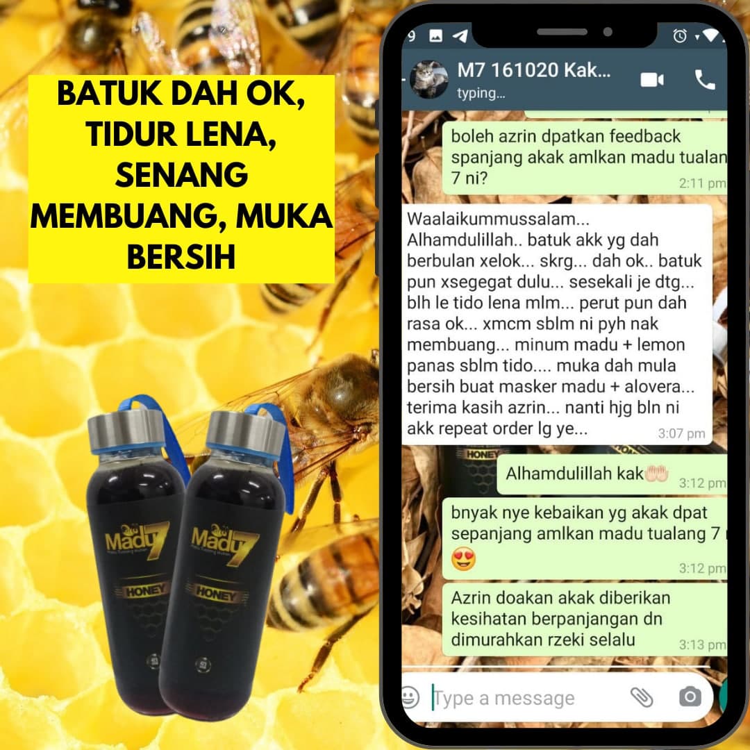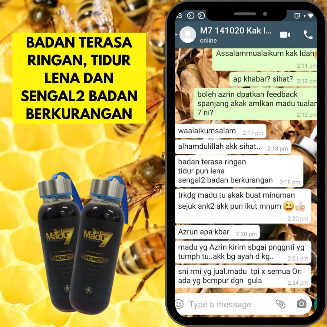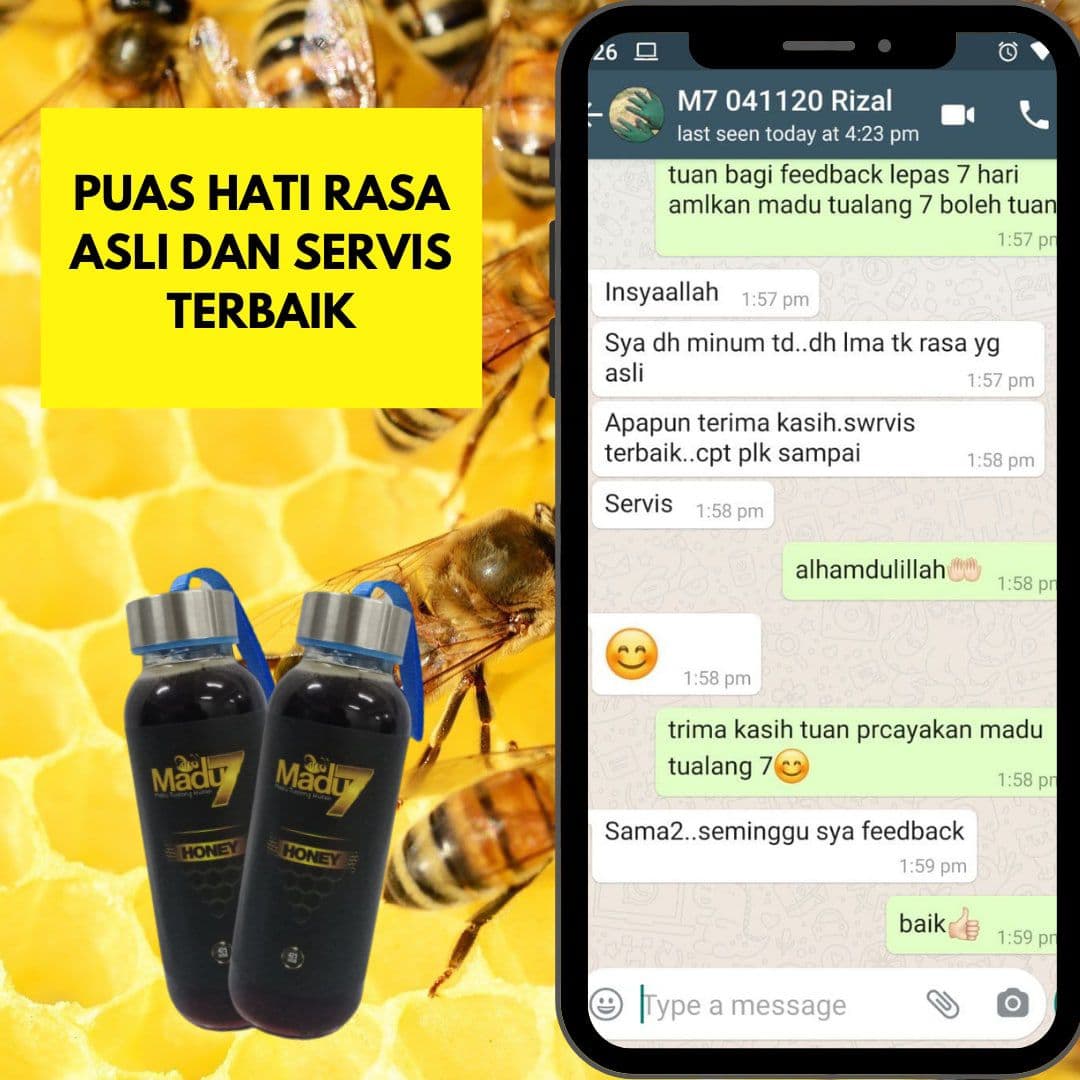 Dengan mengamalkan secara konsisten 2 sudu Madu Tualang 7 setiap malam sebelum tidur dapat menambahkan tenaga dan menyelesaikan masalah lemah tenaga batin ketika bersama dengan pasangan.